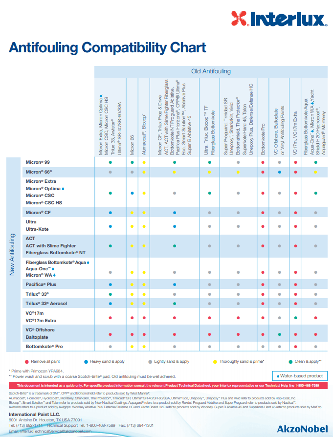 Interlux Bottom Paint Compatibility Chart