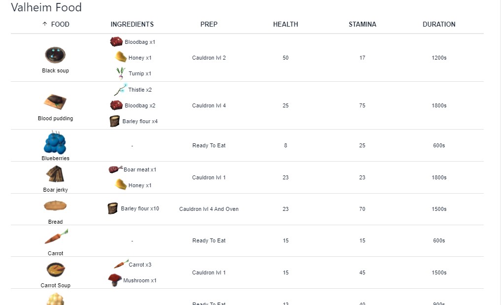 GitHub MayaSaringan/valheimfood A table displaying foods from the